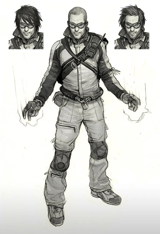 Bocetos sin definir el aspecto que podría haber tomado Cole MacGrath.