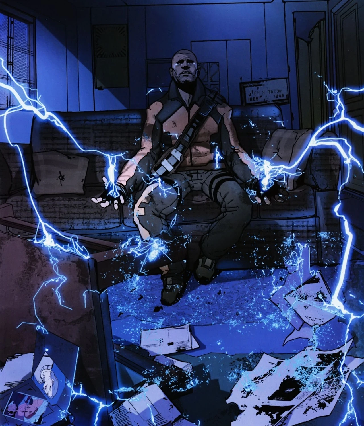 Un asustado Cole despertando y activando sus poderes eléctricos sin control.
