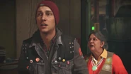 Betty hears a noise and comes out of her office, armed with a stapler, only to find Delsin, who jumped in from the roof after tagging his brother's Sheriff billboard. When they hear Reggie demanding Betty to open the door, she lets Delsin use the back door to get out so he can try to get to the Longhouse, which fails leading to Delsin's arrest by Reggie.