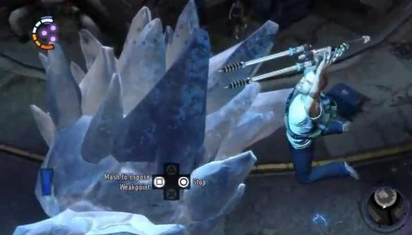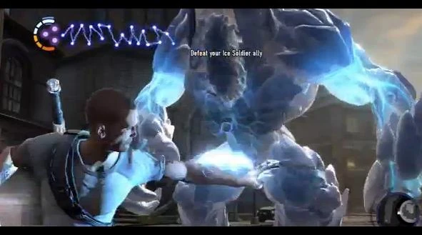 Kuo meets with Cole and warns him of their Ice Soldier Ally's deterioration, and the need to intervene before he hurts someone. Heading further into the Gas Works, the pair find the Ice Titan battling a squad of New Marais police officers. Noticing Cole and Kuo joining the fight, the Ice Titan shouts “The power…calls to me” and “Kill me, or I’ll kill you!”