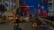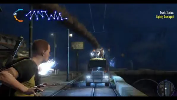 The trio are pursued by the Militia through the streets lining Smut Triangle, Cole defends the truck whilst defeating the Militia chasing them. Asking Wolfe what the Militia didn't want him talking about, Cole learns about a device Bertand wanted Wolfe to create that would solve both their problems and that the Blast Cores were just the beginning. Before Wolfe can say more, a Militia truck plows into the trio's truck in a head-on collision. Cole is sent flying and is unable to do anything as Kuo is dragged away by the Militia, Wolfe having been killed by the impact. Crawling into a storm drain, Cole laments how without Wolfe, he no longer has a lead on the six remaining Blast Cores and how he can feel the Beast coming for him.[1]